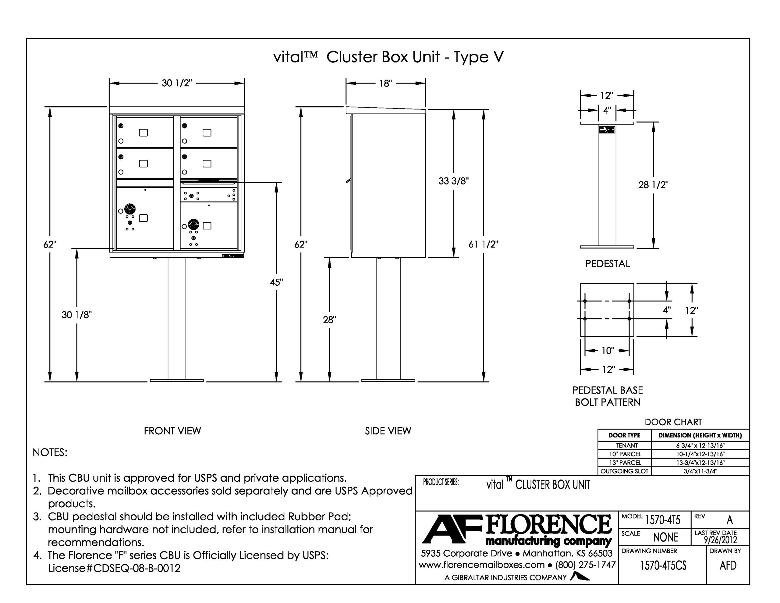 • Pedestal included! All aluminum construction pedestal included with all 1570 CBU mailboxes.