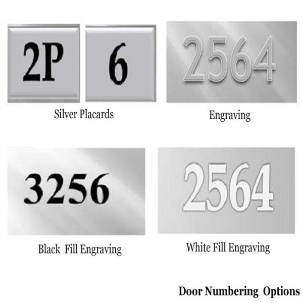 Attractive silver placards with black numbers 1 thru 19 are included for door identification.